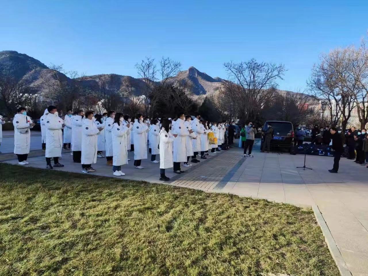 上午8时50分,承德市冬奥服务保障团队70名队员们在市行政中心广场集结,举行出征宣誓仪式。“北京2022年冬奥会、冬残奥会承德市服务保障团队出征!”随着一声号令,肩负着市委、市政府的亲切关怀与嘱托,承德市冬奥帮扶服务保障团队全体人员精神饱满、士气高昂地奔赴张家口。